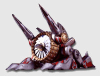 EPISODE 02: Mysterious Sigeki Fancrusher Total length: 53.6 Meters Total 35.0 Meters Full-width: 30.3 Meters Weight: 11000 tons Weapon: Two enormous drills. The crusher flasher and the enormous two nail crusher bells. |