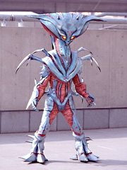 EPISODE 05: Beitorun 240 cm Weight: 115 kg This rhino-resmebling Alienizer was charged with the mass murder in five planets and the attempted murder in changing humans into a red liquid gasoline. He wanted to make profit. The liquid was not to its full potential so he committed robbery to get enough money to have it complete. The Dekaranger found it difficult fighting through his armor. |