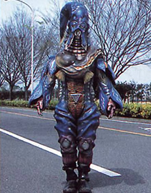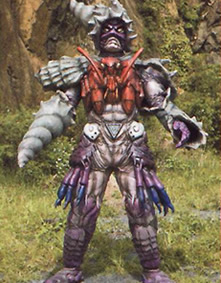 EPISODE ONE to TWO Makirika Height: 215cm to 53.7m Weight: 78kg to 19.5 tons He is the Gekiranger's first opponent. A master of the Confrontation Beast Mantis-Fist style who is sent to retrieve the Fist Demon Bracelets of the three Fist Demons from Miki who already got it in a shrine deep within the woods. After retrieving the bracelets, he attacked the city and when the Gekiranger came, he shed the rin skin and became his Beast-Man form. He then became giant. Master Shafu roughed him up and he decreased in size. He became a Rinrinshi once again and Mele turned him back into his BeastMan form. Makirika reffered to the death of his enemy as a 'prayer'. His attacks include the Hill Splitting Fist and the Mantis Flashing Cut. Mele and he then plotted to flood the city which they did and he was ultimately defeated by the Gekiranger's GekiTohJa. |