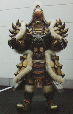 EPISODE THIRTY-SEVEN, FOURTY-FIVE Gouyu Height: 206 centimeters to 55.6 meters Weight: 99 kilograms to 26.7 tons A master of the Phantom-Beast Catoblepas-Fist uses sound-based attacks. He first fights the male Gekiranger in Episode 37 and Super GekiYellow later bested him, leading him to use the growing giant tatic. Sanyo arrived when he was loosing to retreat. One of his Gengi attacks include Beat Thunder Shake. A Catoblepas is a Greek half-buffalo, half-boar mythical beast. He is not seen again until in Episode 45, where he comes to defend Rio when Gou declares a duel. Gou destroys him with the newly-attained Heaven and Earth Turning Transformation Strike. His name is based on He Yu of the Shan Hai Jing, a collection of Chinese mythology. His motif is the Boar of the Chinese Zodiac. |