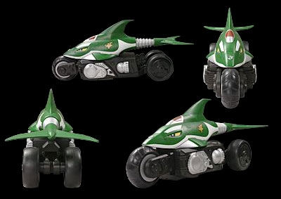 | Birca Go-OnGreen's Partner Engines is a hybrid of an orca and a motorbike. He is good at quick movements. He speaks a variety of words from French, Spanish, and Italian, he says he is Latin. He likes pretty girls, he wanted Saki as his partner first. He disobeys the rules often, and rushes into things without thinking them through first. Kegalesia steals his Engine Cast and he agrees to be Hanto's partner when he sees him fight kegalesia. He and Gunpherd head to Earth at the end of Ep 3 and is used in his true form in Ep 4. Birca explains the reason they were late was because they got lost. He and Hanto are very much alike, they love fun and pretty girls. |