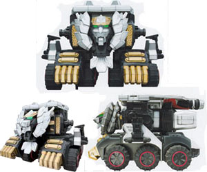 Groundion Height: 25.5 m Width: 33.0m Length: 37.0m Weight: 1500t Speed: 600km / h Power: 800 million horsepower After combining with an off-road dump truck body, Gosei Knight becomes Groundion. As Groundion, he can perform the Groundion Laser attack, shooting an energy beamwhile unleashing a barrage of missiles. He forms the main body of Gosei Ground. |