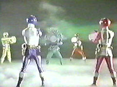 Mirror Make-Up Artist has the best of him until the others arrive. | He beats them and leaves. Daigo notices familiar energy on him. The Dairanger un-transform and gather around Daigo. |