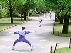 | The sword glows red and then the bright light illumates the room of a young boy named Kou. The voice calls out to the boy.Kou is joyfully skating and can make great leaps. | He steals a couple's drink and then spots the woman of his dreams... Lin. He presents himself and then grabs her left breast. She is understandably upset, he steals her purse and runs off. He takes her keys. |