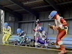 | Kibadaioh is formed, fire doesn't phase it. They punch Kamikaze on top of the others and the battle is over. | Four of the five adult Dairanger and some unidenified others play a friendly match of baseball. |