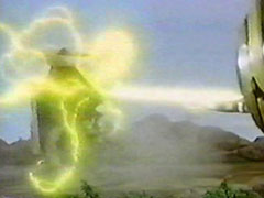 An explosion occurs and then it reverses. Out of the smoke, Birdcage Vagabond is huge. The Dairanger call their Mythical Chi Beasts. | The Dairanger form Dairen'oh. Birdcage Vagabond kicks Dairen'oh and they throw his foot back. |