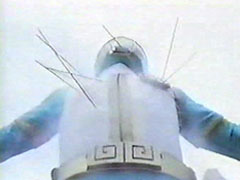 Daigo uses an illusion of his winnebago rushing past him. | The Dairanger use their Super Chi-Power Bazooka against the monster. |