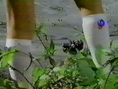 The mother and Byakkoshinken exchange words. She then places her ring in Byakkoshinken's mouth. She entrusts the sword with Ryou. | The next day, the five Dairanger, Byakkoshinken, the twins' mother and Kameo go toward the cave in their jeep to get Kou. |