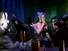 | Zelmoda. They get on his case. He has a plan for the Carranger as usual. A light bulb lights and he gets an idea. They imagine a strange man with a blue wig over their spaceship Baribarian. The lights return to normal in the saloon and everyone start | paying attention to the three generals. Ritchihiker scolds Zelmoda with his weapon. A glass leviates by itself and this intrigues Ritchihiker. A chair is pulled out for him and out of nowhere, AA Abanba appears, who has the ability of invisibility. |