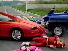 | and everyone thinks Pink is crazy. Pegasus Thunder gets in front of Dragon Cruiser and they nearly crash. Red and Pink are ejected from the car. AA Abanba flies away from them, teasing them. They run after him. Yellow spots Pink is down. She tries to | snap her out of it as AA Abanba attacks Green and drags him along. He then attacks the others. He then traps them in a cage. Pink and Yellow arrive. Red talks to them through their helmet. AA Abanba threw a sheet over the cage and then he and the cage |