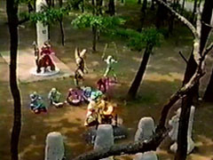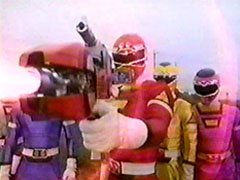 | Signalman's head as he repaired his base; and reached the monster in a field. The Carranger then arrived where he is. He disappeared again and Red shot him with his Auto Blaster. He appeared and then | disappeared. Yellow suggests combining the Navick Shot, so they make the Navick Blaster and defeat the monster. He grows huge after eating the imo-youkan and RV Robo is formed. Sirender arrives to help. |