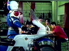 | A mailman hands Signalman a letter from his son Sigtarou. Signmalman remembers playing in a three-legged race with Sigtarou. His wife Sigue took a picture. In the letter Sigatoru sent, there was a picture of his son and his estranged wife Sigue. Signmalman | says the Bowzock has to be taken of but he misses his family. He bumps his Polispeeder into water and it sizzles. Meanwhile, the Carranger are enjoying lunch at Pegasus garage. Signalman rolls in to repair his bike, without them noticing... until he yells. |