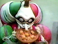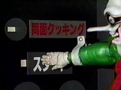 | blasts the heroes out of the pizza. They all leap and attack the monster down. They call for the Giga Booster and shoot at XX Milenno. The gang turns and Signalman is bit out of it and turns as well. He then eats a pizza full of imo-youkans and grows big. | Signalman whistles for Sirender and fights XX Milenno. RV Robo arrives and kicks the foe down. Signalman thanks them and blasts at the monster. He is finished off by the RV Robo's finisher. Later, Signalman looks at the photo of his family. Ichitarou |