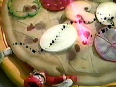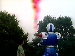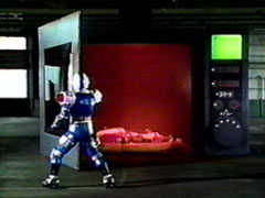 | He makes him think about returning home. Signalman doesn't answer, looking up in the air. They then notice red smoke coming out from the distance. He heads off, telling the boy to stay. The boy watches him go. The oven dings that is done, as the Carranger's | arms struggle from the pizza. When Signalman arirves, XX Milenno is not there. The oven slowly opens to the officer's horror, his friends have been baked alive. XX Milenno comes out and boasts his Carranger Pizza. Signmalman shoots him |