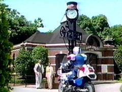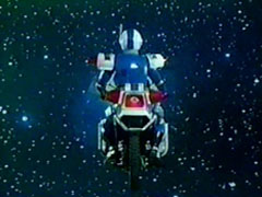 | around him to huddle up. Naoko pulls out her Auto Navi and hook it up to the Polispeeder. The Tenma thanks Signalman for his help. Signalman drives Polispeeder and he can't control it. The gang explain its coordinates are hooked up to go to the | Police planet. The boy nods. Signalman decides to head off. He is sure the Carranger will take care of the Bowzock. He heads off and the bike glows in blue and leaves the planet. He stops to thank everyone. He heads off and becomes a blue light again. |