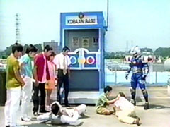 | couldn't find him. The Tenma parents are looking everywhere. Signalman arrives. They ask if it was a Bowzock attack. Signalman imagines the boy as his own son. He promises he will save him. The mother scolds Signalman. He hides his face. | Elsewhere, the Bowxock appear with their unconscious victim. He awakes. The signal rings, awaking Dappu. Kyousuke is taking this seriously, they transform. The Tenma family are in front of Signalman's base. Yoshie Tenma is upset, she starts a fight |