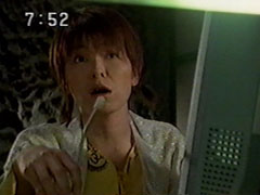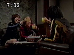 | The bottom symbol lights up, it is an angry man's face. He blows steam out of his nostrils. He tells the three to sit down and they obey. Then he bops each one of them painfully on the head. At the Centipede, Wendinu questions Kangaruretto's abilities. | Furabijou asks Sargain if this guy really can be a threat to Earth, but he reassures her that they should just watch. Things have calmed down a bit at the shipping yard. Yousuke asks Ikkou if he is planning to fight with them again. |
