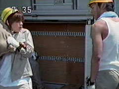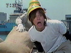 | At the city harbor,men in gray are unloading brown bags and piling them out in the sun. No one stands out, Ikkou sets a bag down. One of the foremen bellows they have a new part-timer. It is Yousuke, the boss pushes him towards the brown bags. | He is surprised to find Ikkou. Ikkou decides the best action is to just go on with work like normal. He gives Yousuke an annoyed light shove and collects a bag to carry. Hefollows after him, across the bridge to the dock as Yousuke asks questions. |