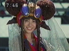 | Yousuke calls quickly for the Triple Gadget and the Goraijer do their Double Gadget. The two blasts merge together as they approach, but Kanga puts up an energy barrier thatrebounds to our heroes. From behind them comes Furabijou. | Today is their last, he tells them, and then the three Jakanja race into battle. Our heroes are caught between angry enemies, and suffer the attacks. Yousuke gets punched by the foe, falls back rolling over the hood of a car and beaten down. |