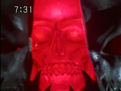 | Two schoolgirls talk about a skull who curses them and then you are gone for a week. One of the girls has such a mark and wants to be saved. She then disappears, sending her friend running right inot the monster. His eyes glow red. | His skull opens up to reveal a red skull. Kai hears of this from Mandora-Boy. This hades beast probably doesn't get detected by their MagiPhone. He has Kai fetch an old search tool called the Theremin (electronic instrument). |