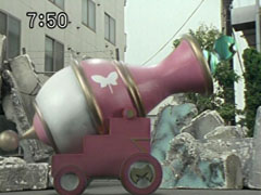 | She runs off, surprising them all. Makito is knocked out of his armor and injured. Houka comes running towards him. He regrets not being able to go to her wedding. She goes to his aid. | He thought she was an illusion. She says without him, she can't get married. He gets up and is charged up. They both transform and do a mini roll-call. She becomes a cannon. |