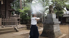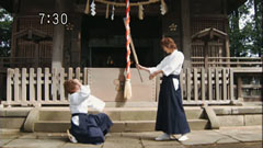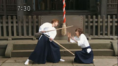 | Chiaki tries to block Ryuunouske's hit in practiing in front of a temple but gets knocked on the head. They watch Takeru do it, with Mako trying to strike her. Ryuu wants Chiaki to do it to him. | Ryu stops it but one of the swords gets him poke on the ribs. Ryu accuses Chiaki of cheating and he runs off back to the mansion. In the Sanzu River, Shitari compliments Dayuu's playing. |